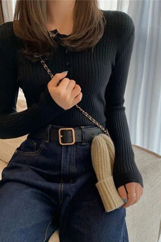 Black Knitted Cardigans Slim Fit Long Sleeve Top