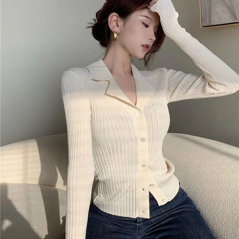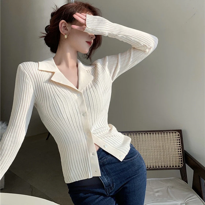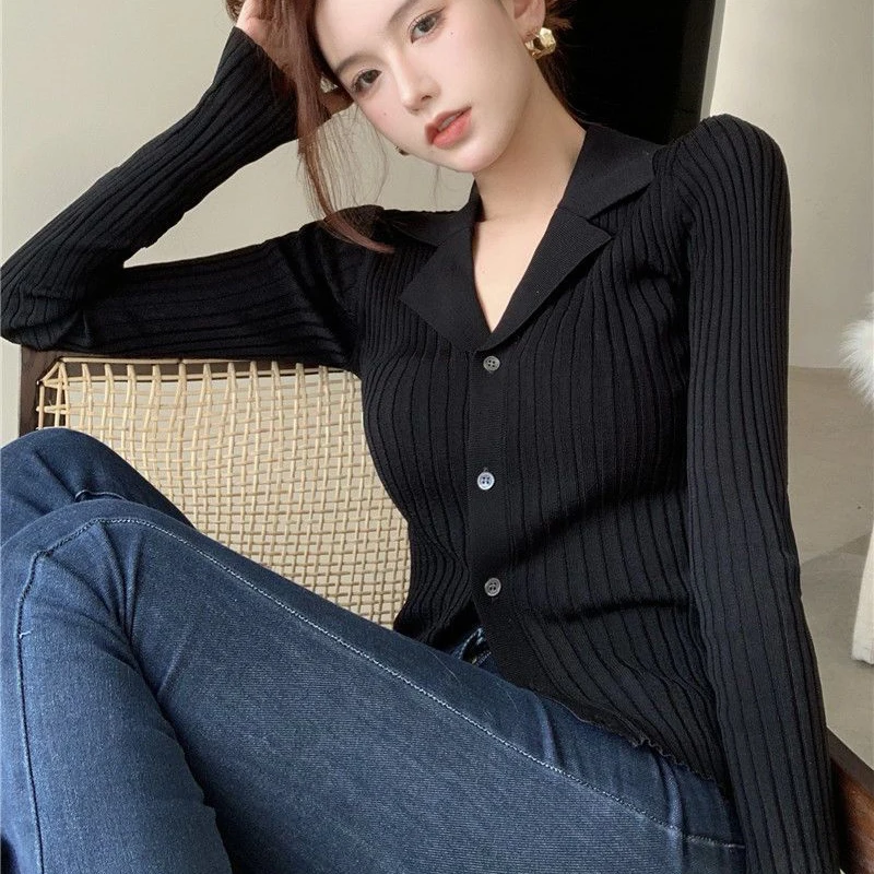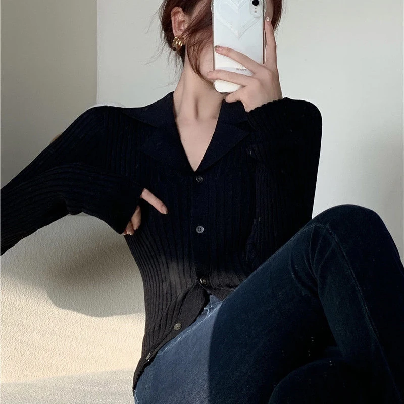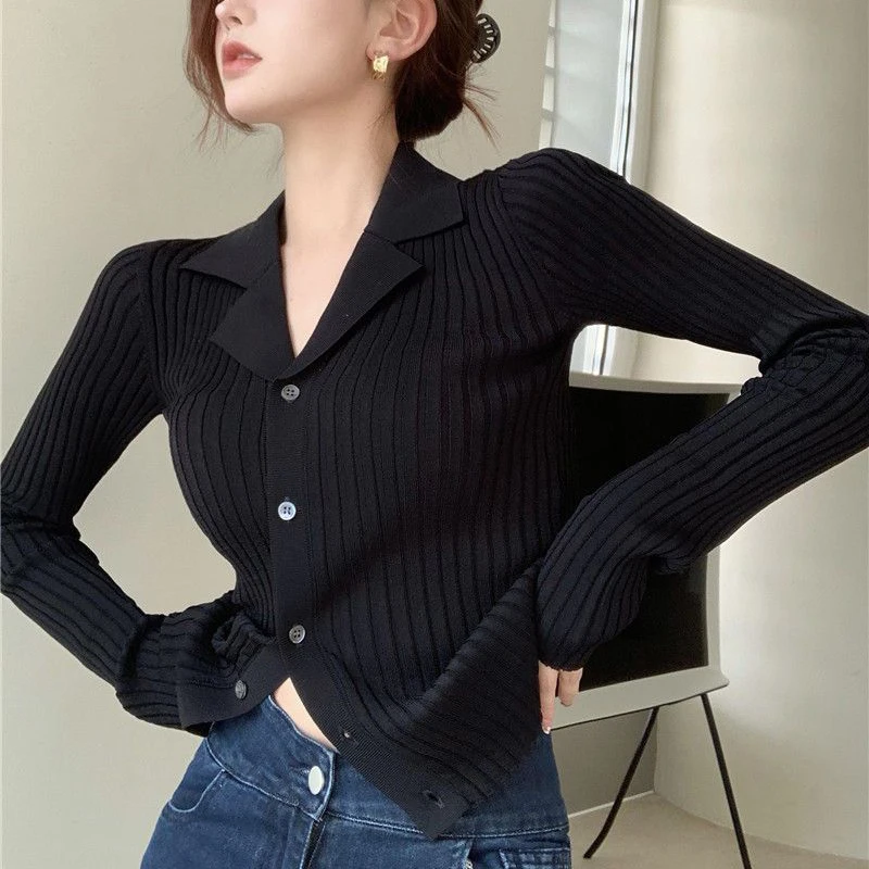 Black Knitted Cardigans Slim Fit Long Sleeve Top