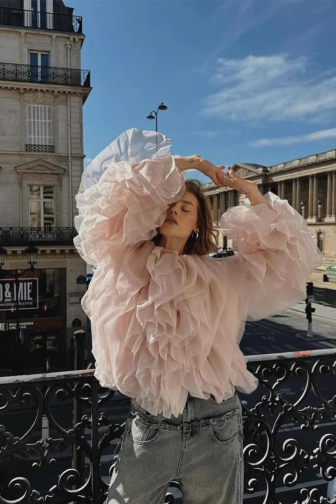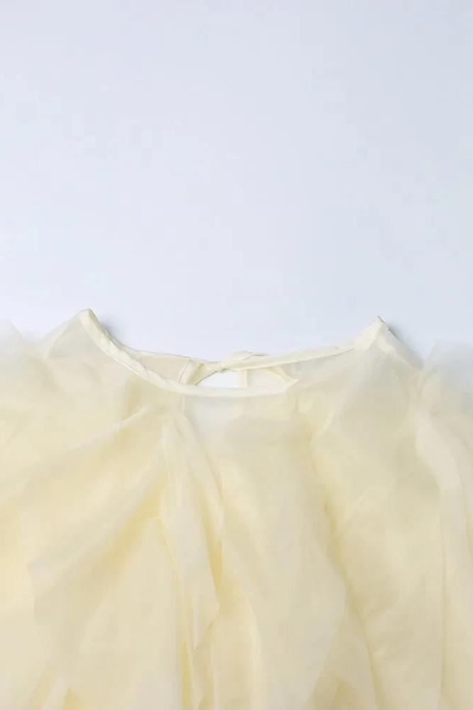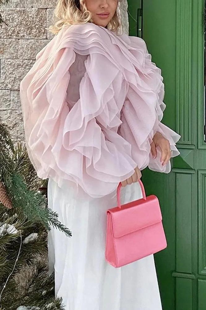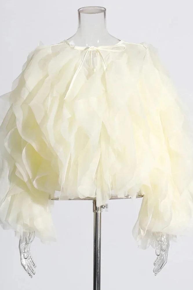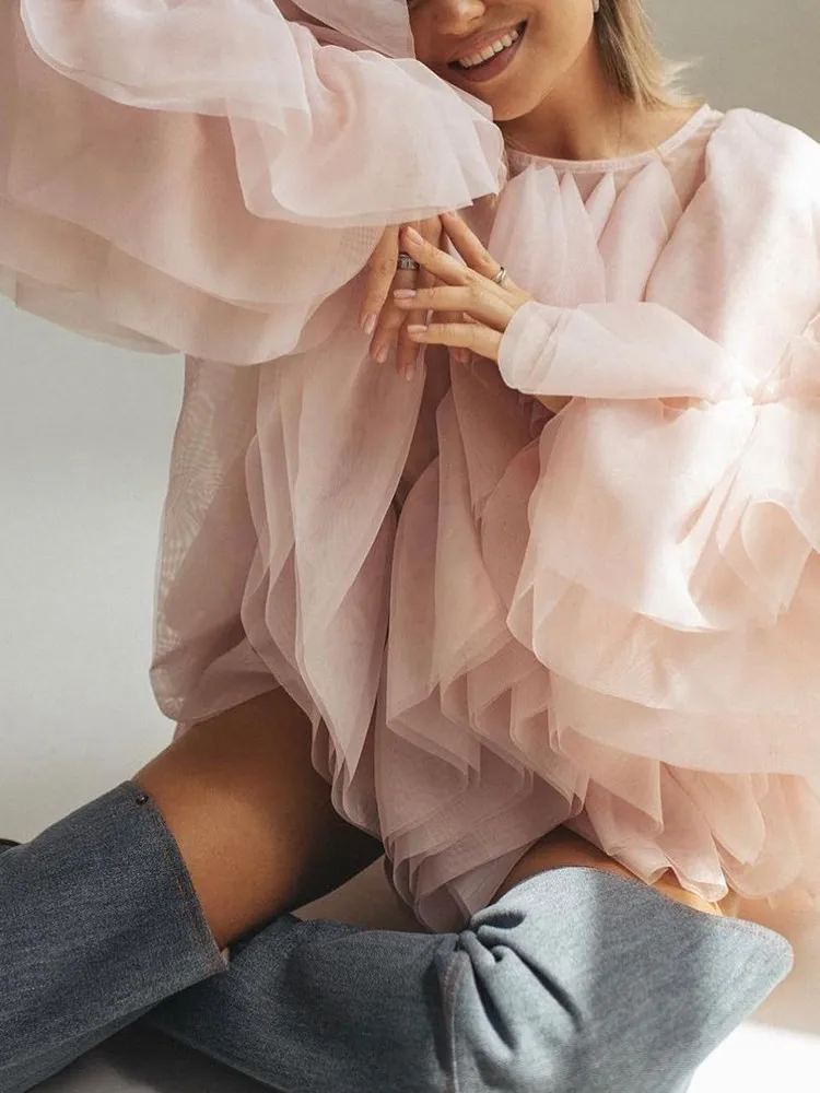 Lantern Sleeve Spliced Lace Up Loose Blouse