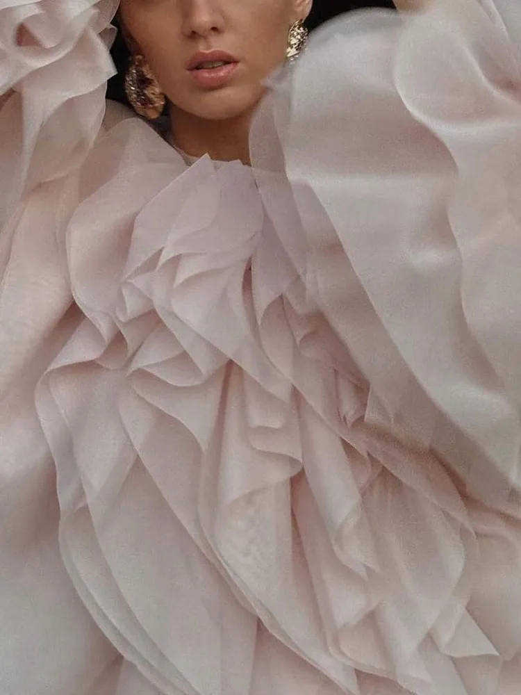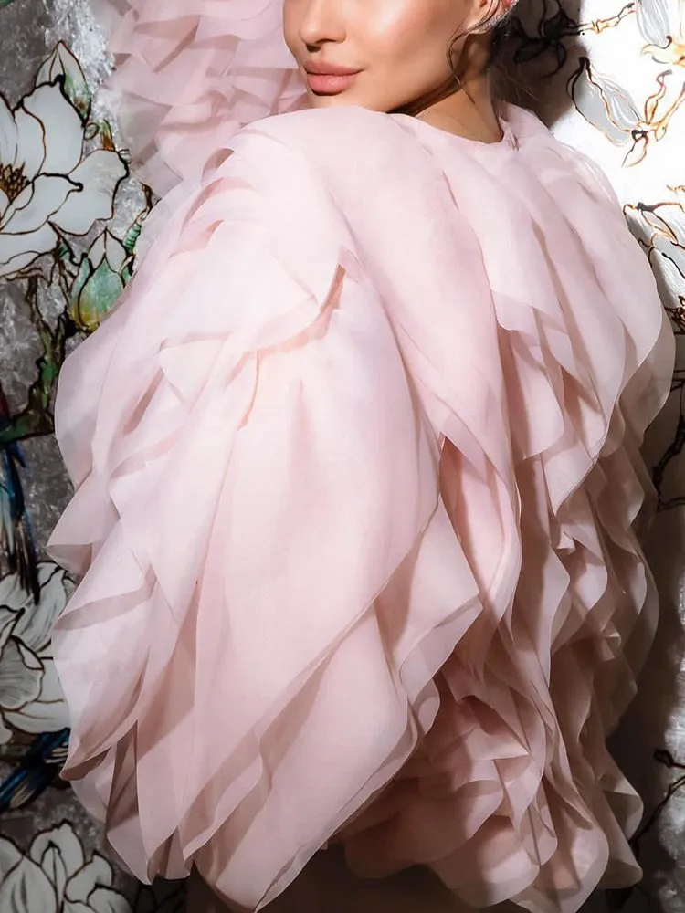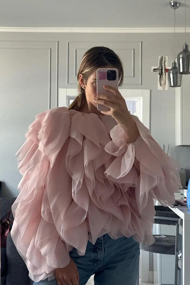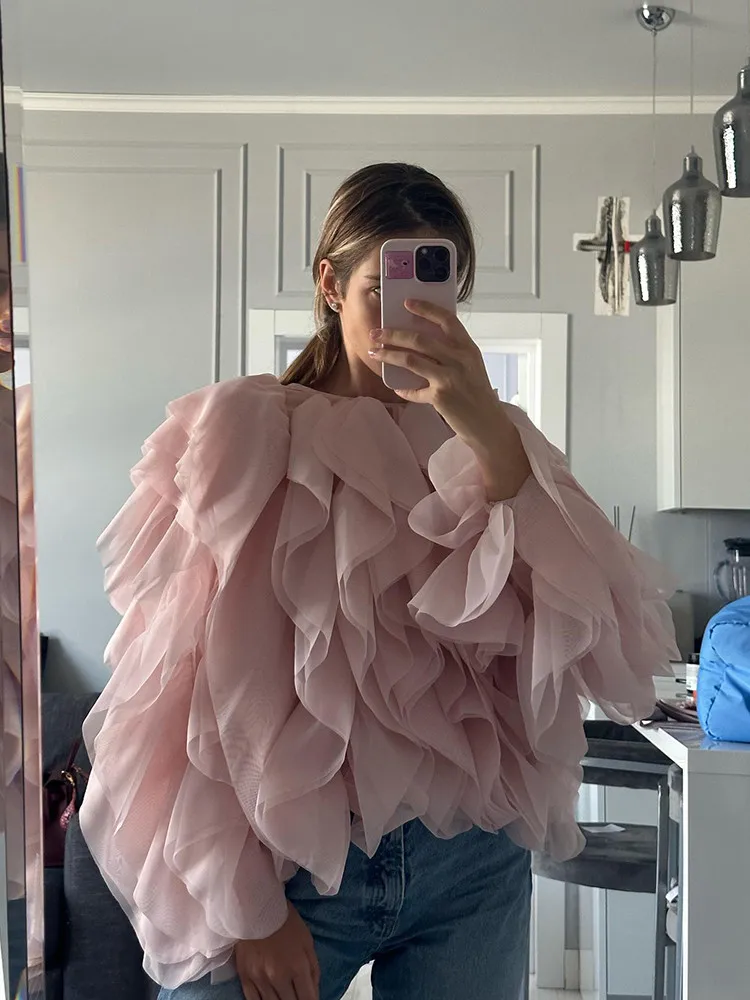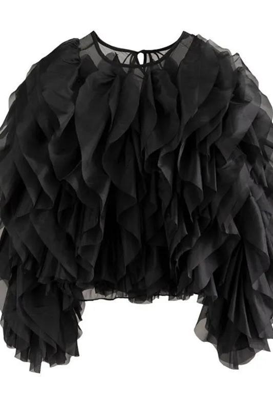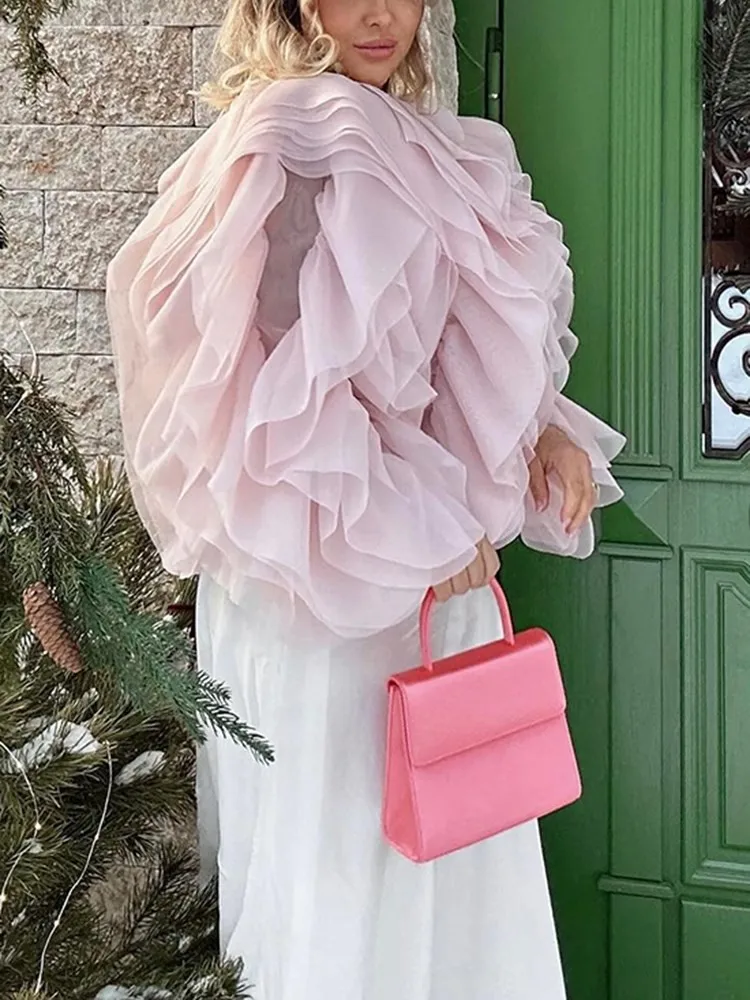 Lantern Sleeve Spliced Lace Up Loose Blouse